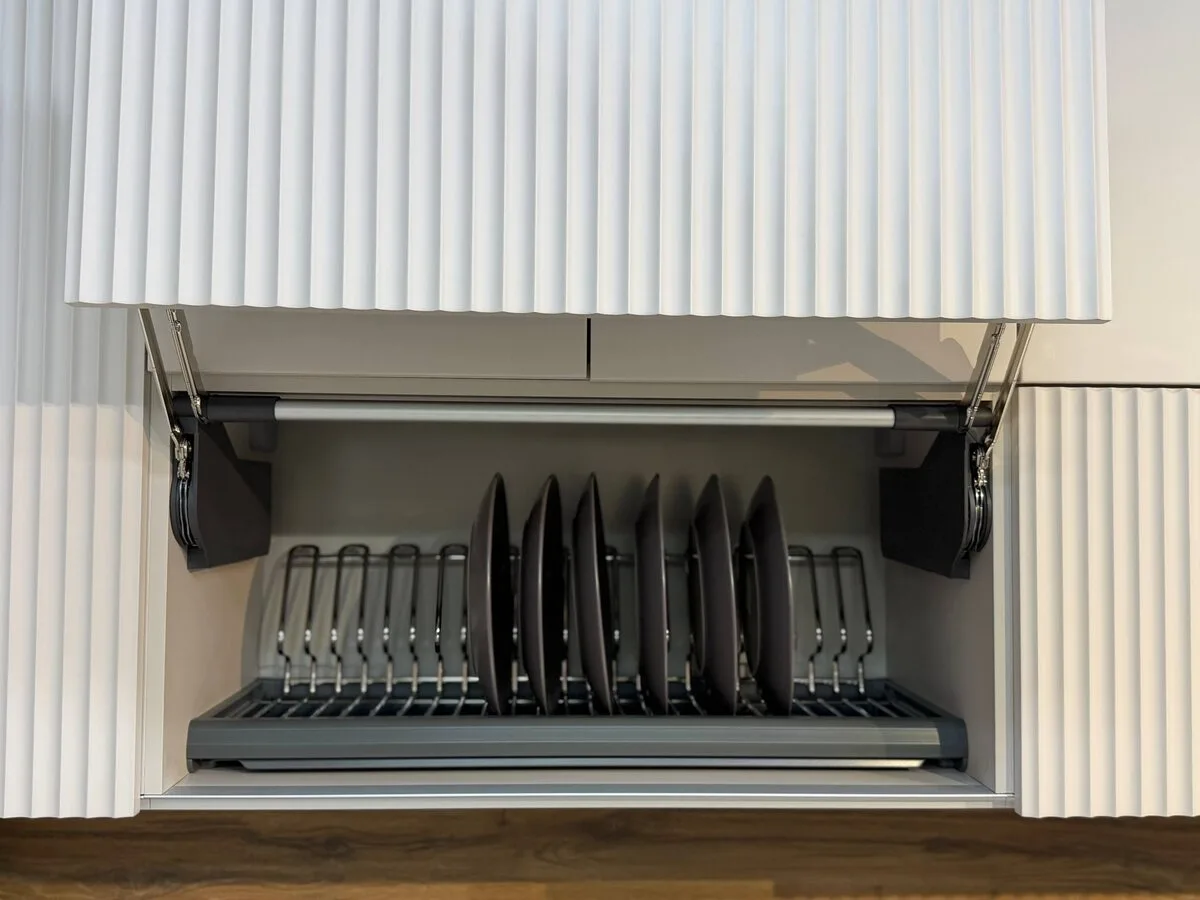 В наших кухонных шкафчиках мы предусматриваем встроенные сушилки для посуды — удобные, продуманные, аккуратные.